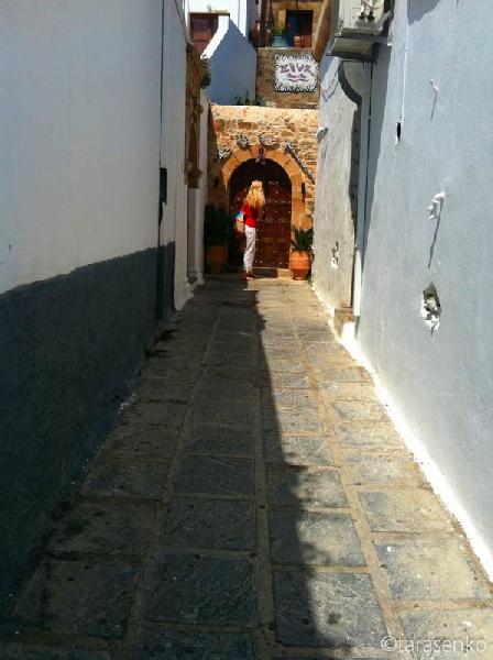 Узкие улочки Линдоса (Родос, Греция)